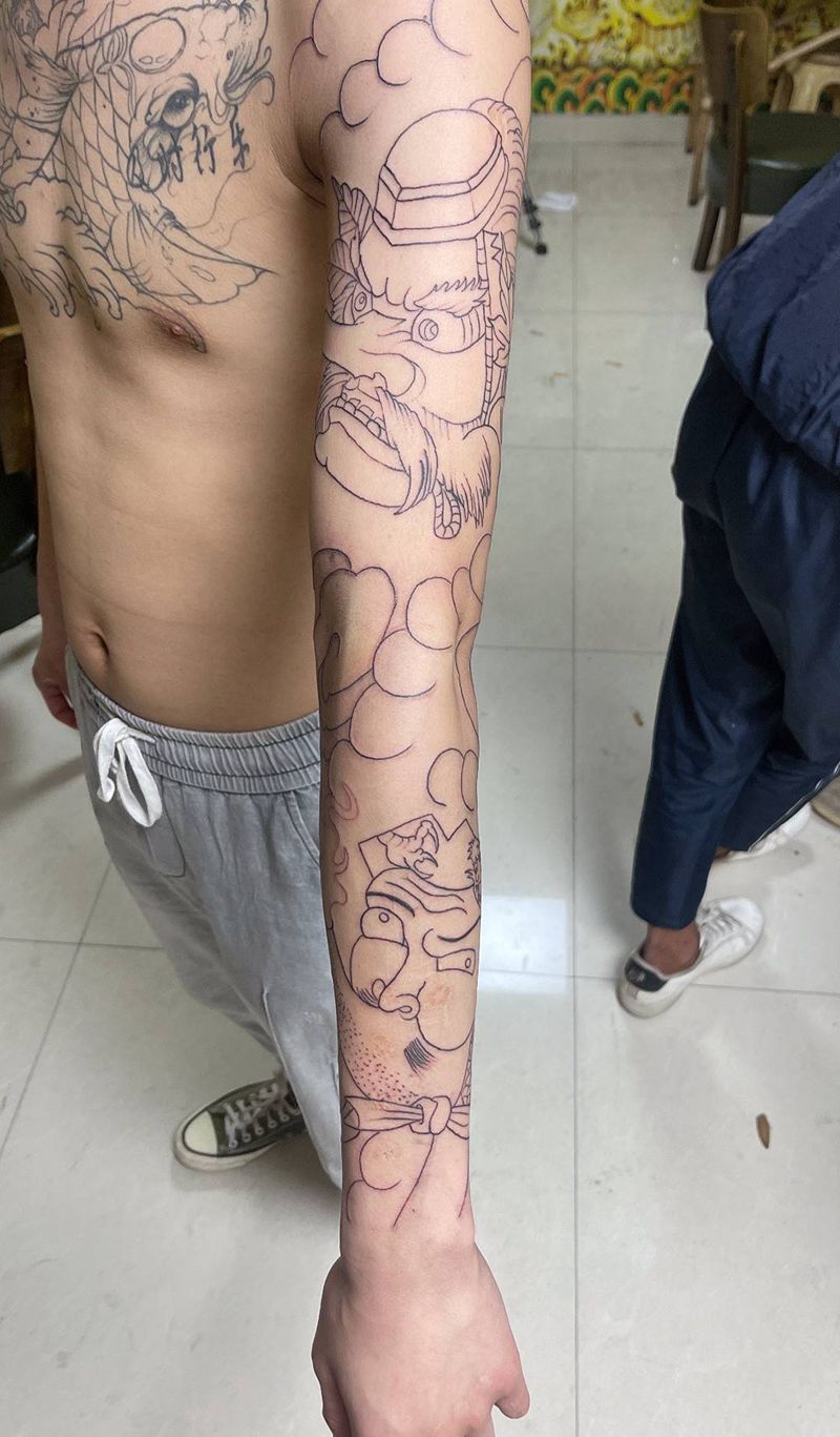 当前位置: 首页 >山西省大同市纹身店-尚道刺青纹身图案>火男天狗花臂线纹身图片_手臂老传统纹身图案