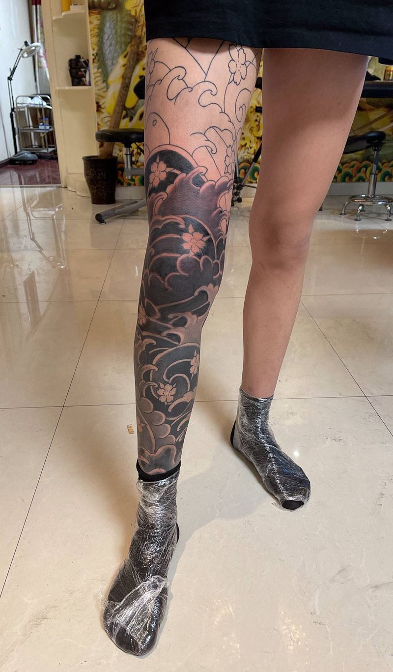 • T网红王老大花腿龙纹身图片_腿部新传统纹身图案