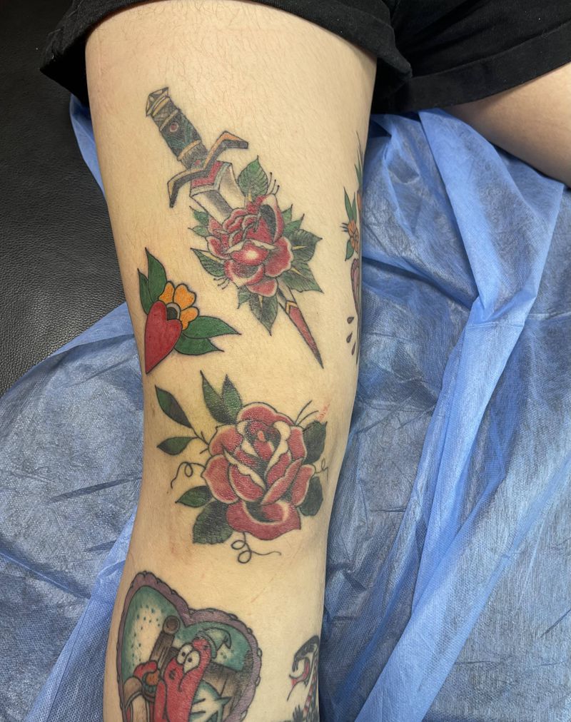当前位置: 首页 >山西省大同市纹身店-尚道刺青纹身图案>拼接oldschool花腿纹身图片_腿部Old School纹身图案