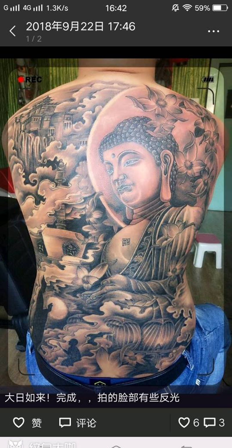 • 黑灰满背纹身图案