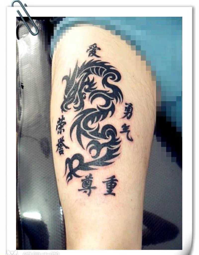 • T网红王老大花腿龙纹身图片_腿部新传统纹身图案