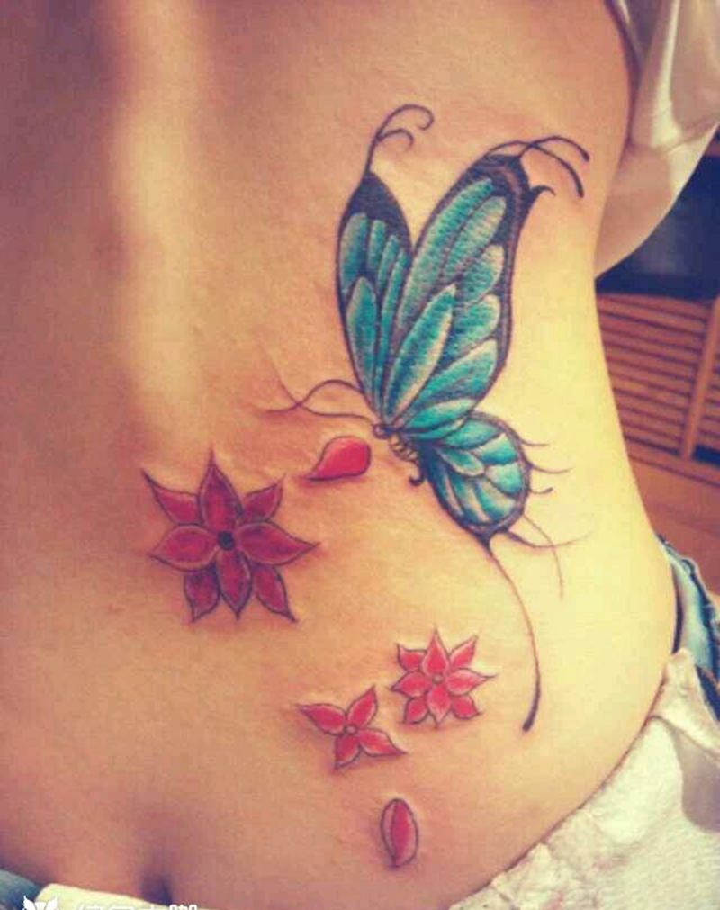 • 东方性感美女腰部温馨花藤图纹身图片