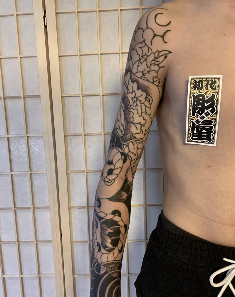 当前位置: 首页 >山西省晋城市纹身店-三晋彫蜃刺青处纹身图案>牡丹蛇花臂一点进度纹身图片_手臂手部老传统纹身图案