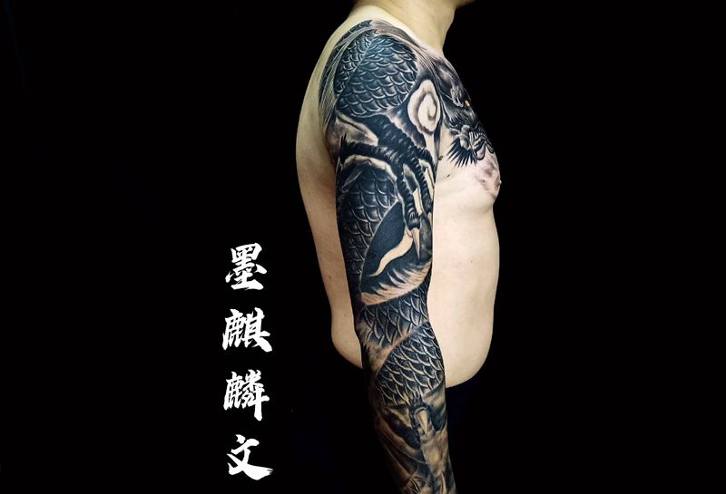 双龙戏珠纹身图片_手臂胸部纹身图案