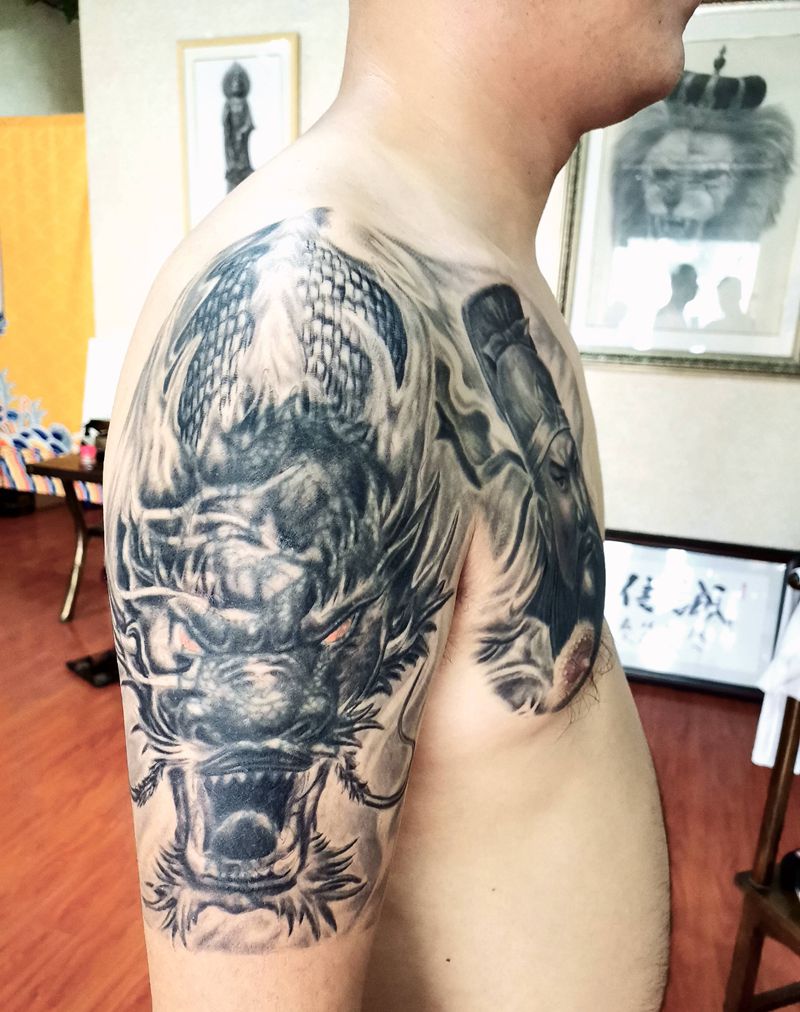 当前位置: 首页 >山西省运城市纹身店-墨麒麟文艺纹身图案>关羽纹身图片_肩部胸部纹身图案