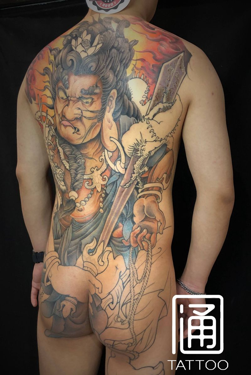 黑灰满背纹身图案