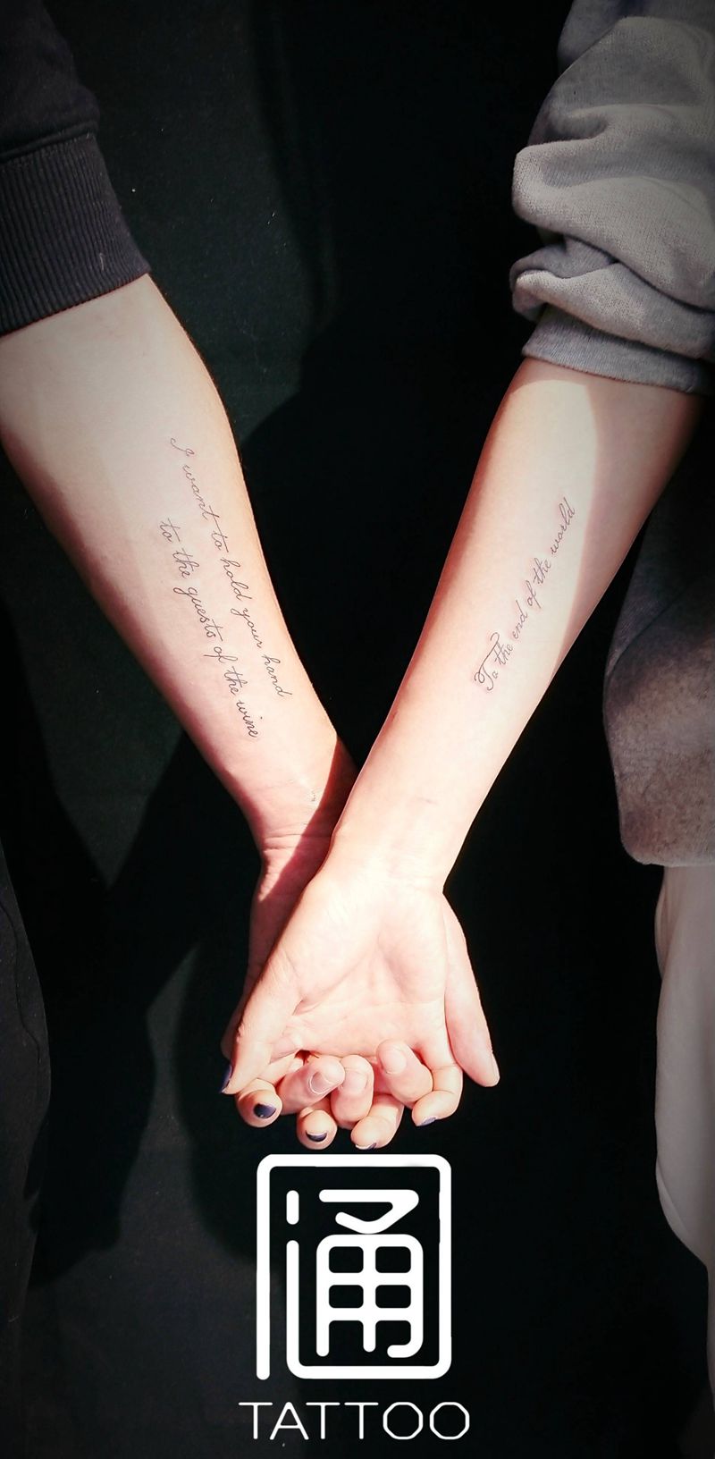 当前位置: 首页 >山西省晋中市纹身店-通纹馆•私人纹身工作室纹身图案>情侣纹身纹身图片_手臂花体字花体字纹身图案