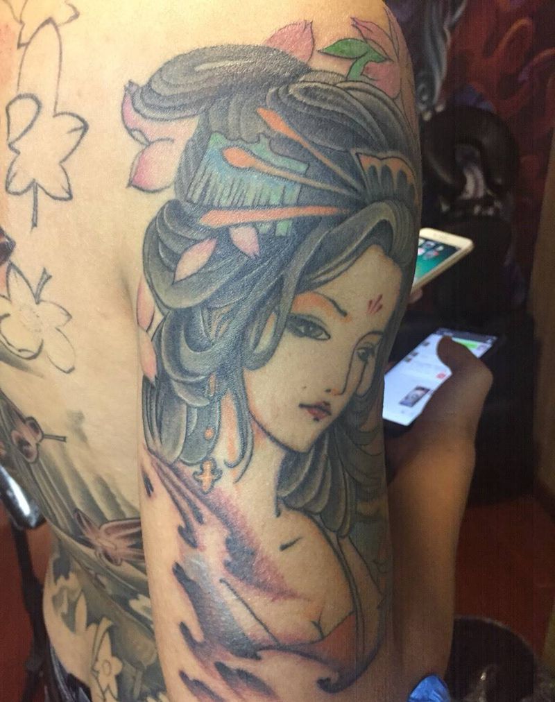当前位置: 首页 >山西省晋中市纹身店-通纹馆•私人纹身工作室纹身图案>艺妓纹身图片