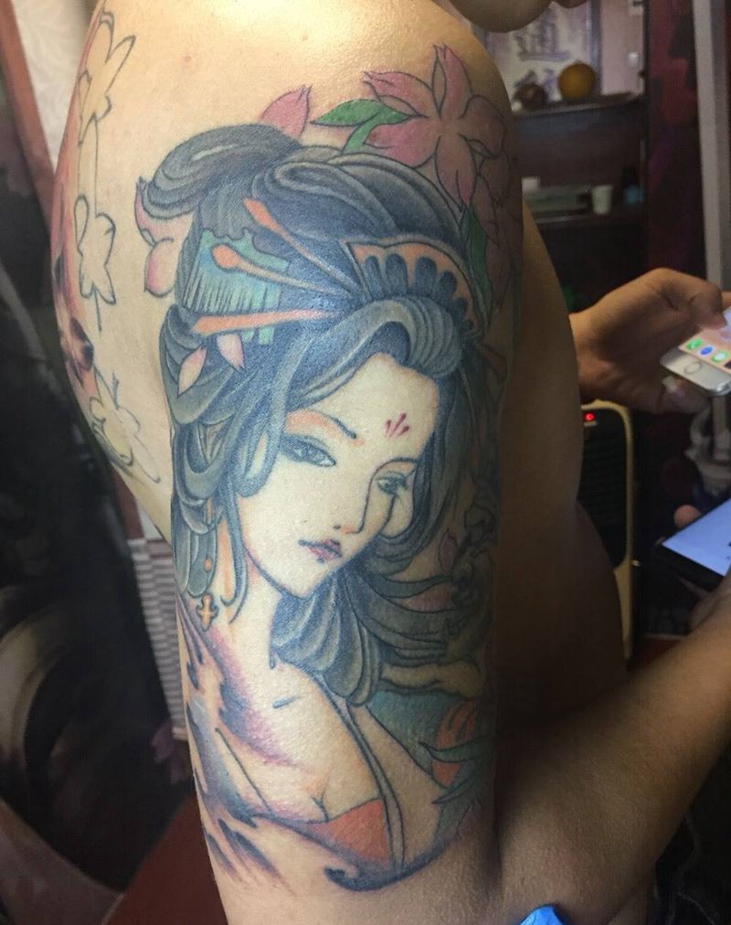当前位置: 首页 >山西省晋中市纹身店-通纹馆•私人纹身工作室纹身图案>艺妓纹身图片