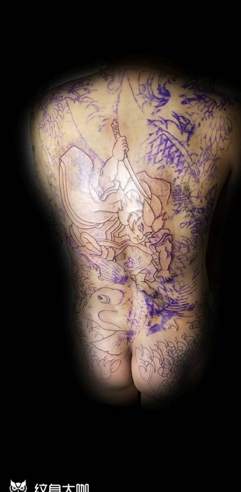 当前位置: 首页 >山西省晋中市纹身店-通纹馆•私人纹身工作室纹身图案>鬼若丸杀鲤纹身图片