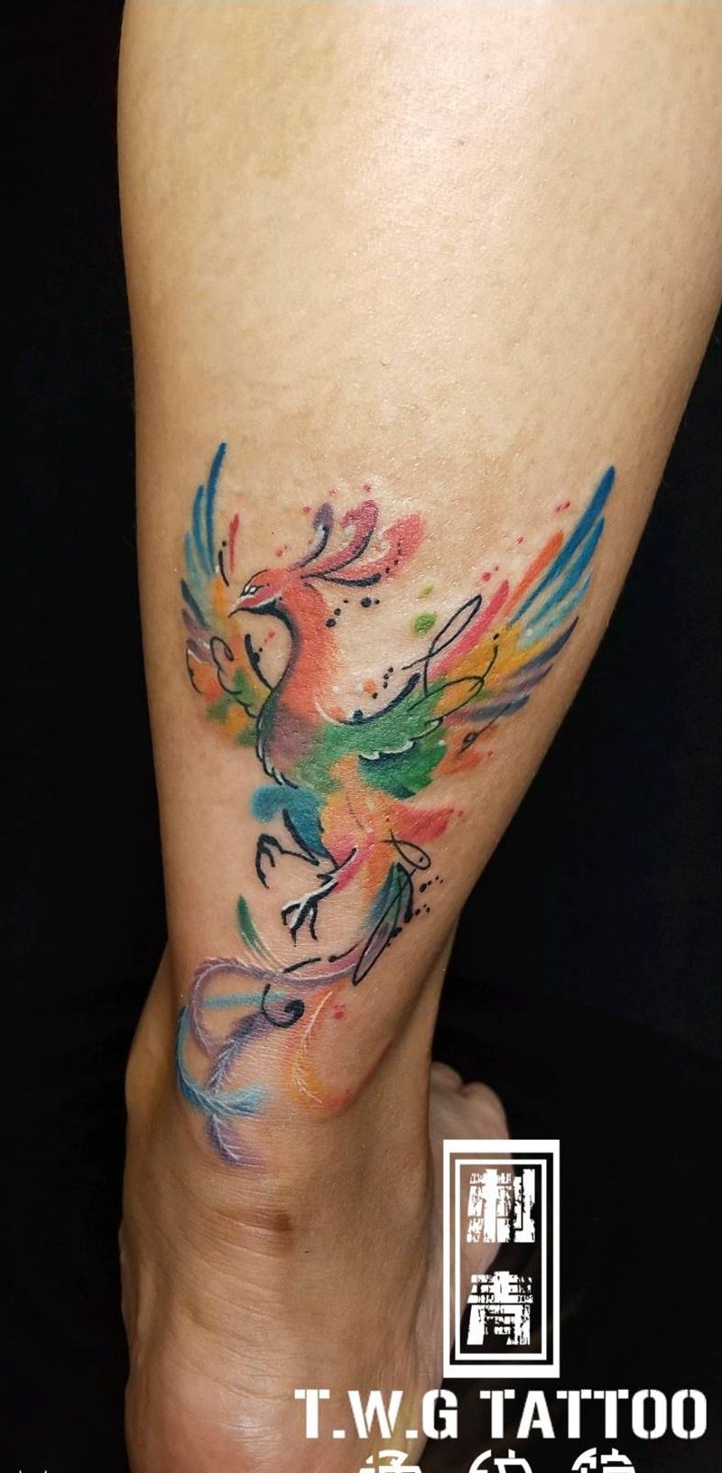 当前位置: 首页 >山西省晋中市纹身店-通纹馆•私人纹身工作室纹身图案>凤凰纹身图片_脚部水墨水墨凤凰纹身图案
