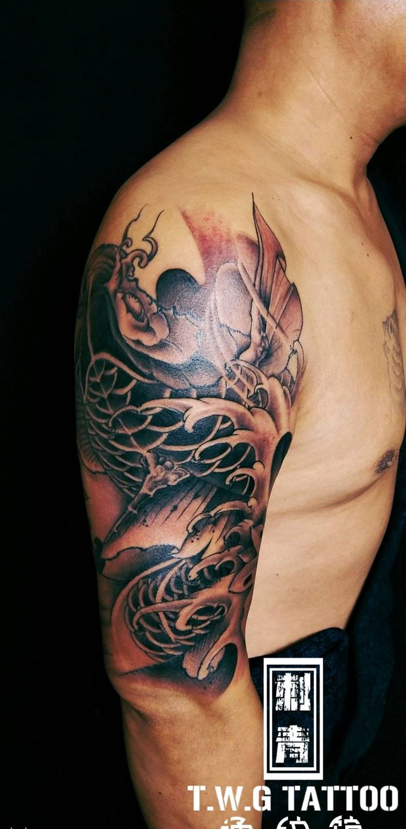• 纹身吧推荐的披肩图腾半胛纹身图案作品展示