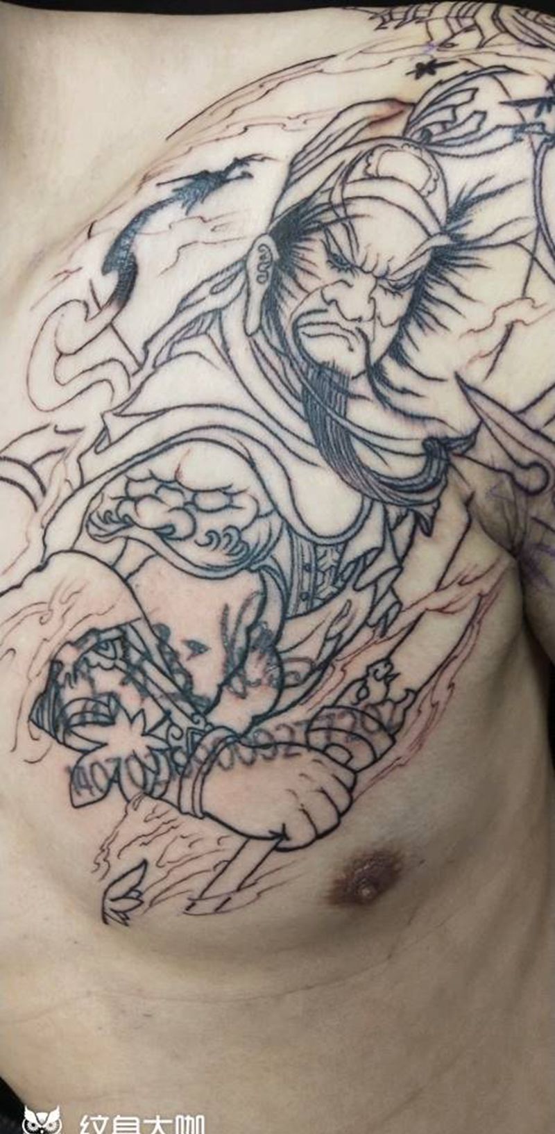 半胛,遮盖纹身图片_胸部手臂新传统关羽,真君纹身图案