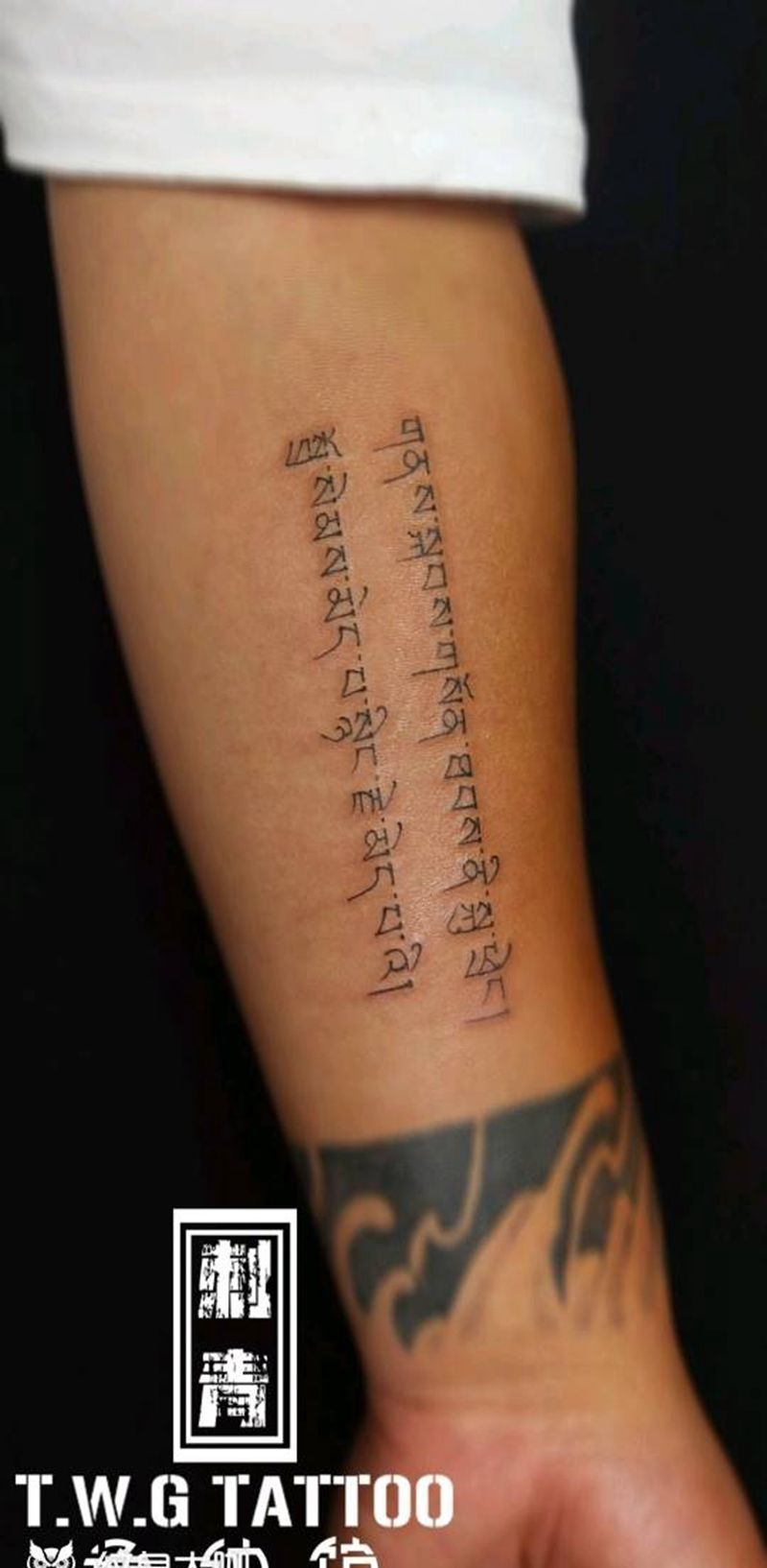 当前位置: 首页 >山西省晋中市纹身店-通纹馆•私人纹身工作室纹身图案>藏文纹身图片_手臂花体字藏文纹身图案