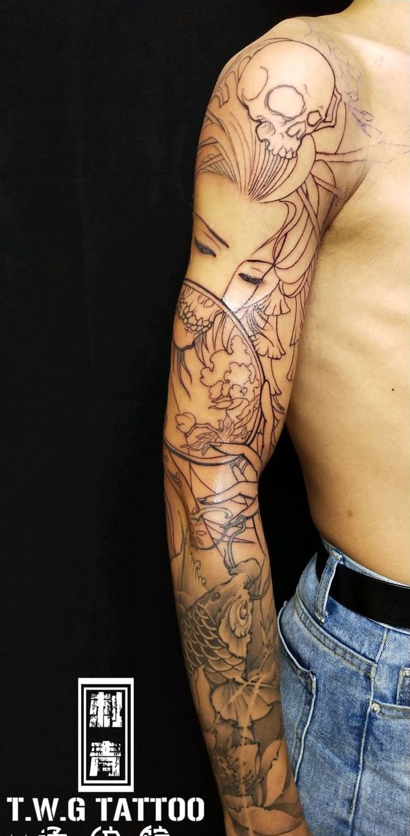 当前位置: 首页 >山西省晋中市纹身店-通纹馆•私人纹身工作室纹身图案>花臂纹身图片_手臂新传统艺伎,鱼纹身图案