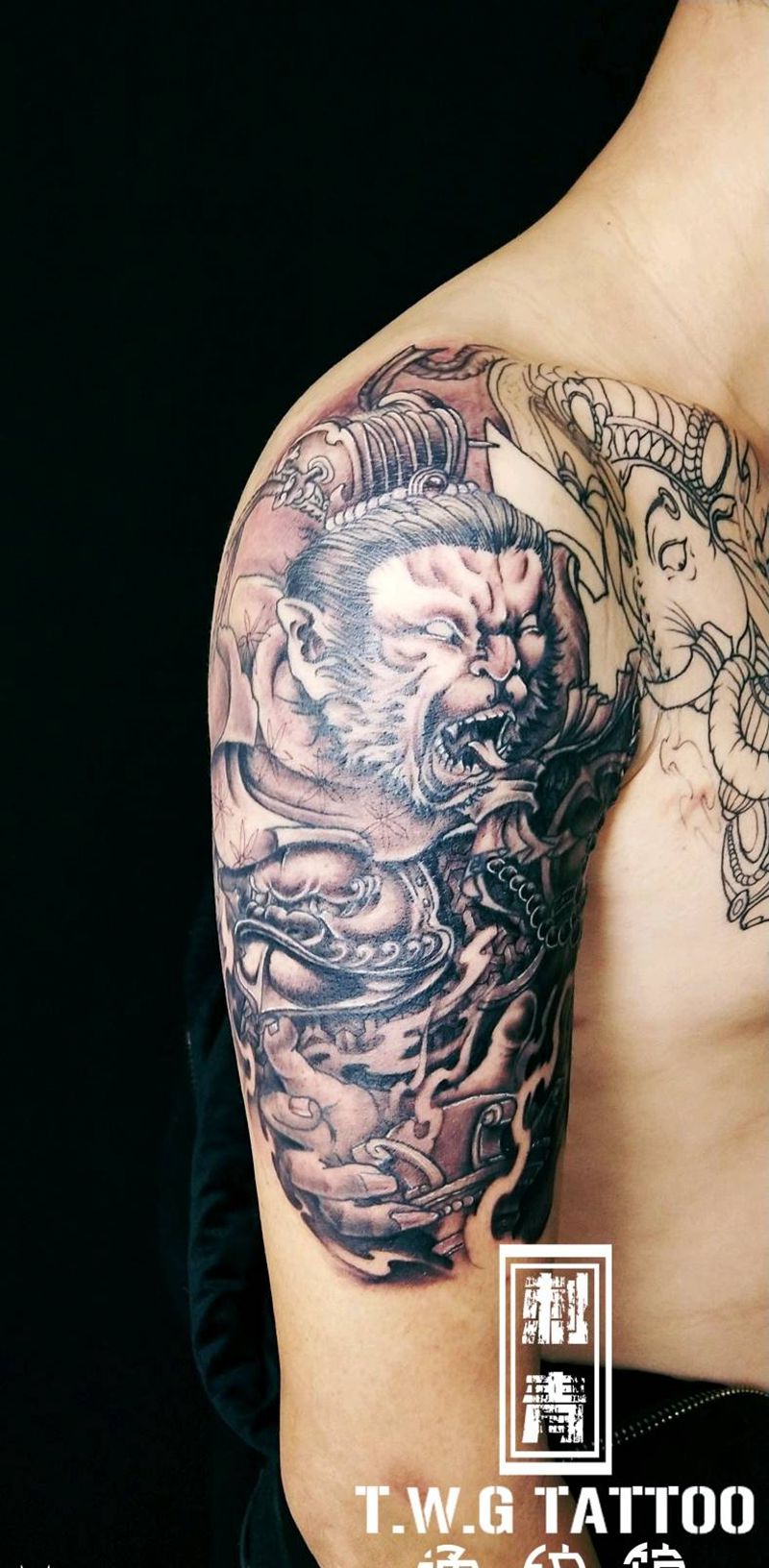 当前位置: 首页 >山西省晋中市纹身店-通纹馆•私人纹身工作室纹身图案>猴子纹身图片_手臂新传统猴子纹身图案