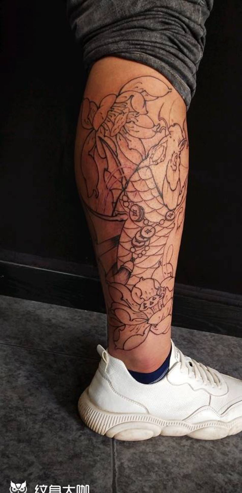 • T网红王老大花腿龙纹身图片_腿部新传统纹身图案