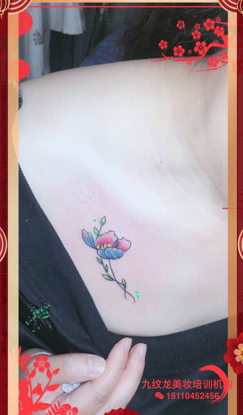 彩色小清新风格纹身图片_胸部新传统纹身图案