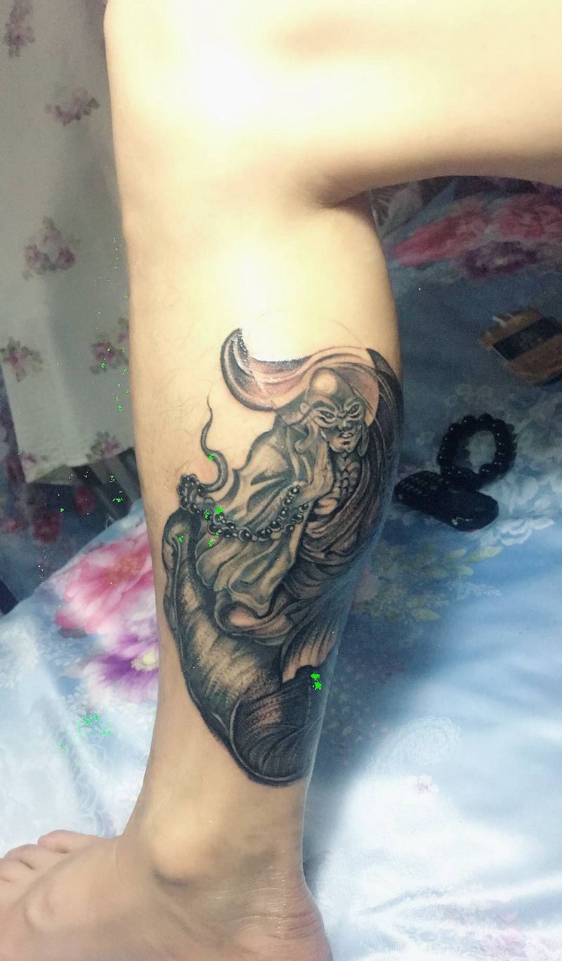 • T网红王老大花腿龙纹身图片_腿部新传统纹身图案