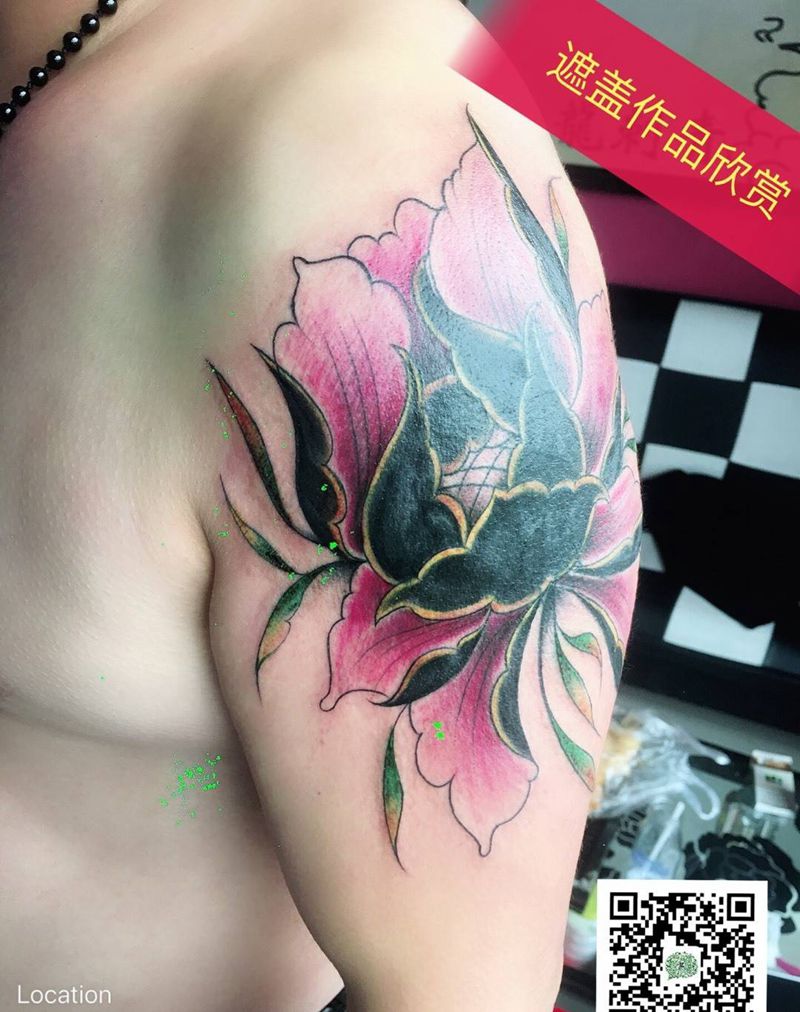 • 女性大花胸纹身_43张霸气漂亮的女性大花胸纹身图案作品