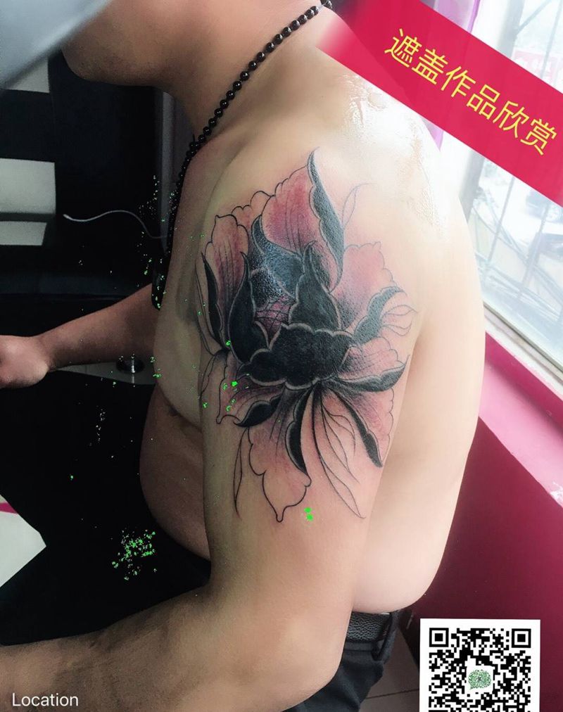 遮盖花纹身图片_手臂新传统纹身图案