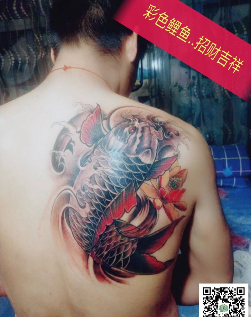 彩色鲤鱼纹身图片_肩部背部新传统纹身图案