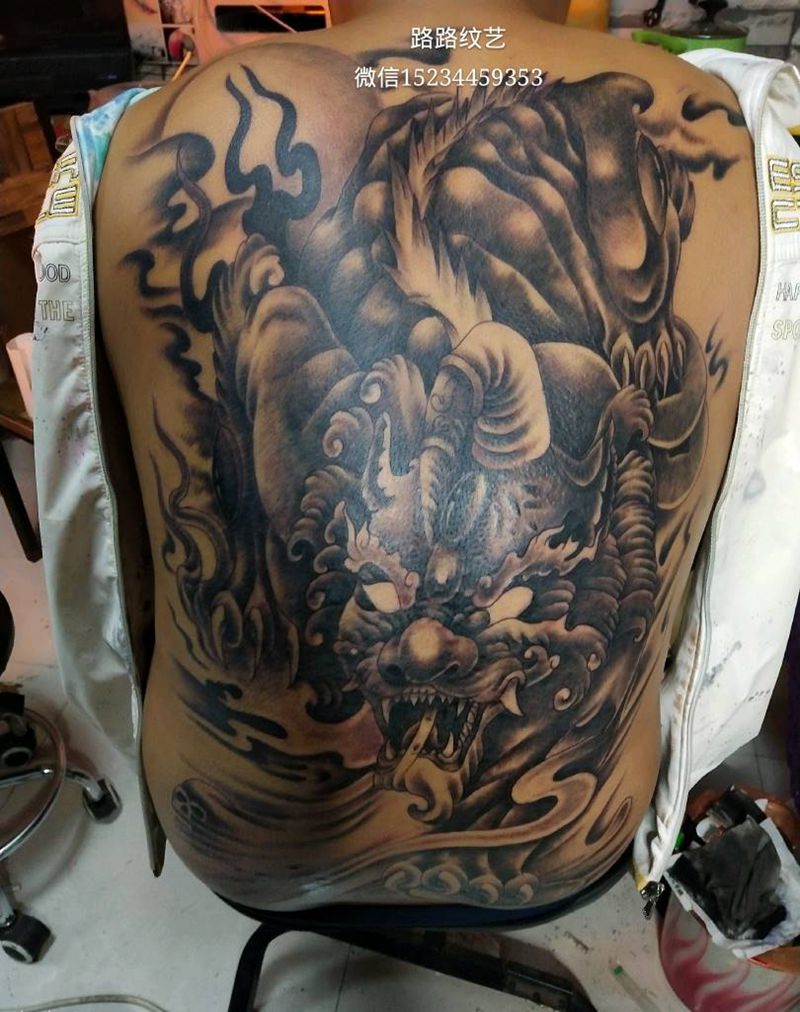• T云龙九郎纹身图片_背部老传统云龙九郎纹身图案