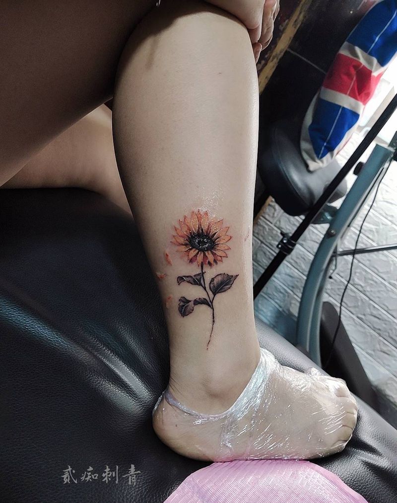 向日葵纹身图片_脚部腿部脚踝 小清新纹身图案