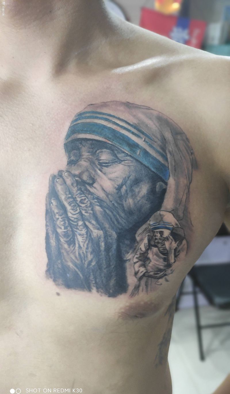写实风格特蕾莎修女纹身图片_胸部欧美写实纹身图案