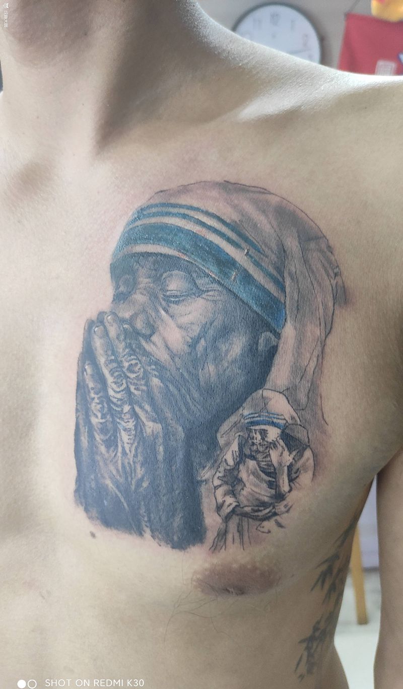写实风格特蕾莎修女纹身图片_胸部欧美写实纹身图案