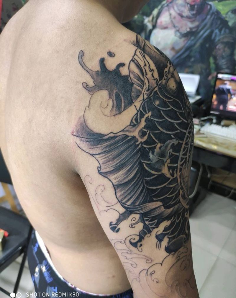 当前位置: 首页 >山西省忻州市纹身店-酷玩刺青纹身图案>鱼遮盖纹身图片_手臂纹身图案