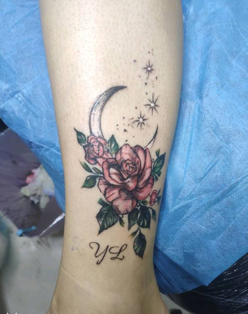 当前位置: 首页 >山西省忻州市纹身店-酷玩刺青纹身图案>玫瑰与星晨纹身图片_腿部纹身图案