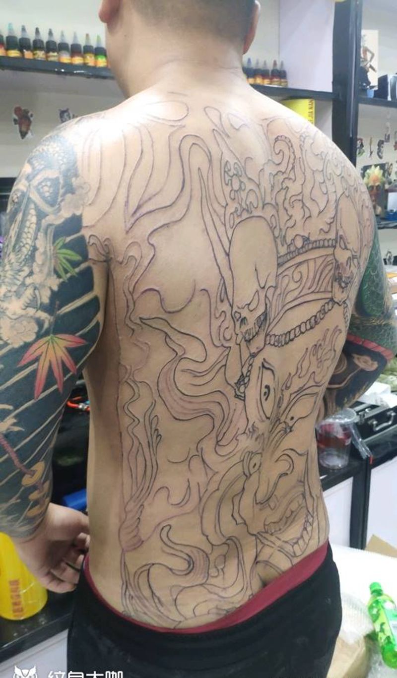 黑灰满背纹身图案