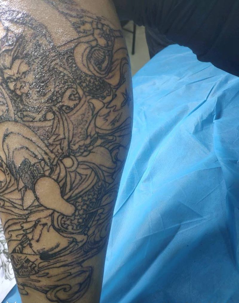 当前位置: 首页 >山西省忻州市纹身店-酷玩刺青纹身图案>齐天大圣走线纹身图片_腿部新传统纹身图案