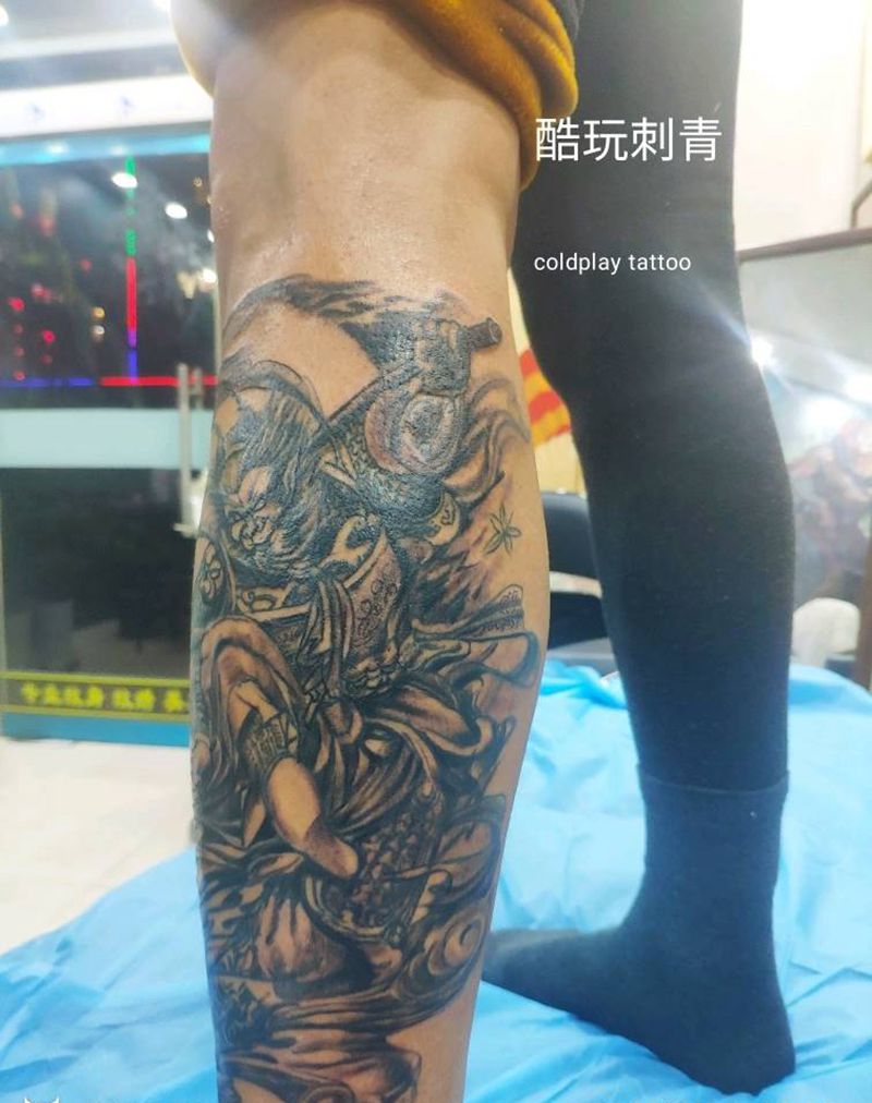 • T网红王老大花腿龙纹身图片_腿部新传统纹身图案