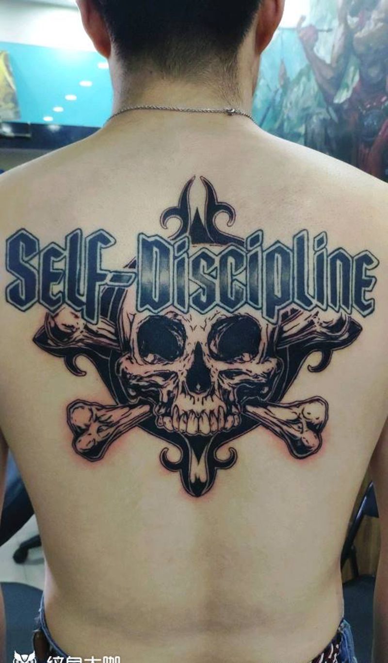 当前位置: 首页 >山西省忻州市纹身店-酷玩刺青纹身图案>帅气骷髅配花体字纹身图片_背部花体字图腾纹身图案