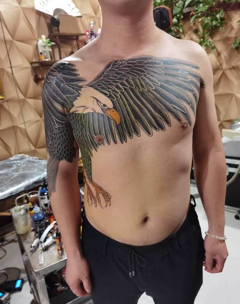 当前位置: 首页 >山西省运城市纹身店-运城火龙纹身机构纹身图案>鹰纹身图片_胸部纹身图案