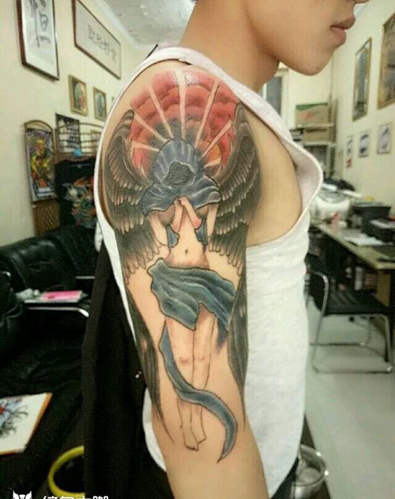 • 纹身吧推荐的披肩图腾半胛纹身图案作品展示