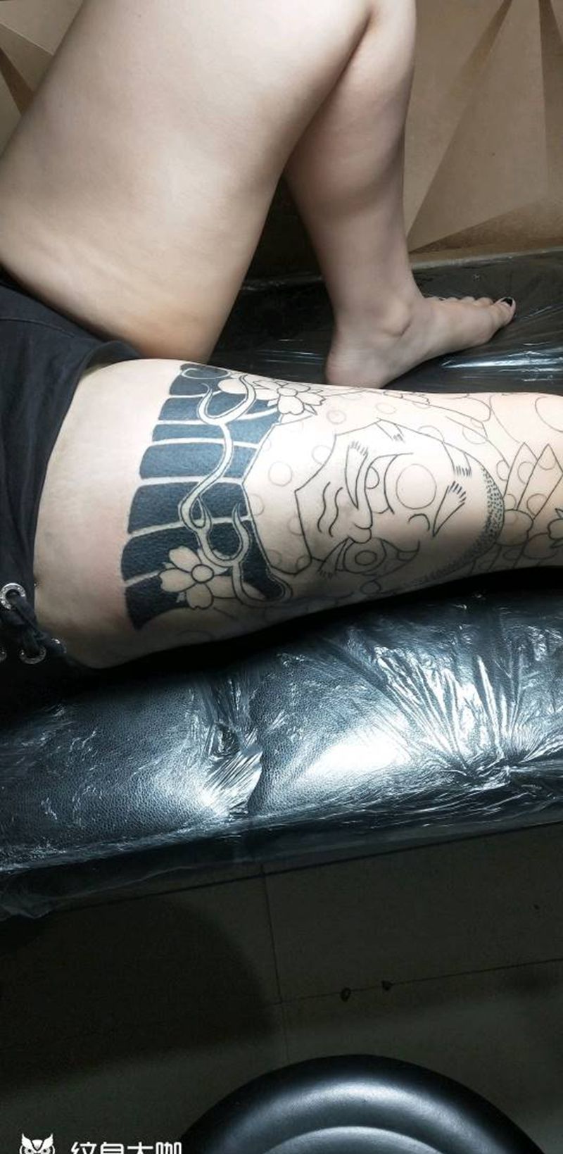 • T网红王老大花腿龙纹身图片_腿部新传统纹身图案