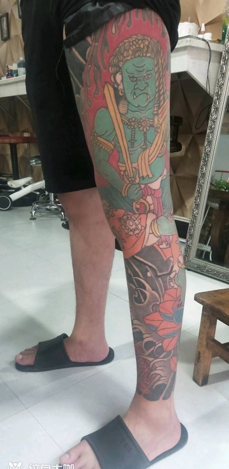 • T网红王老大花腿龙纹身图片_腿部新传统纹身图案