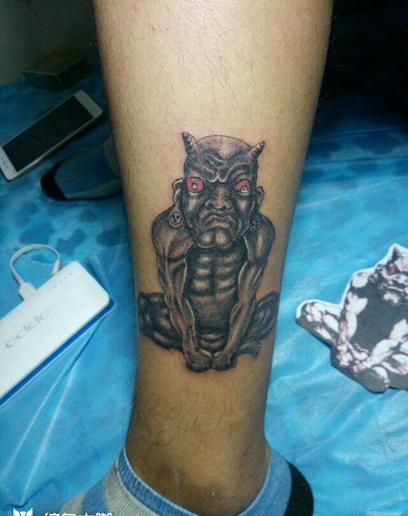• T包小腿吹火男+阿多福纹身图片_腿部老传统新传统吹火男阿