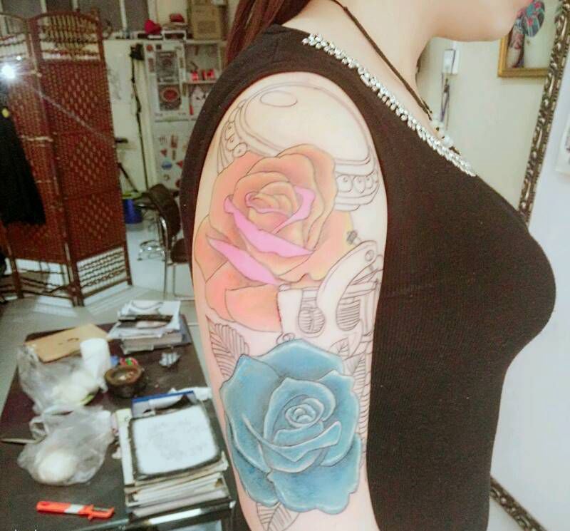 • 女性大花胸纹身_43张霸气漂亮的女性大花胸纹身图案作品