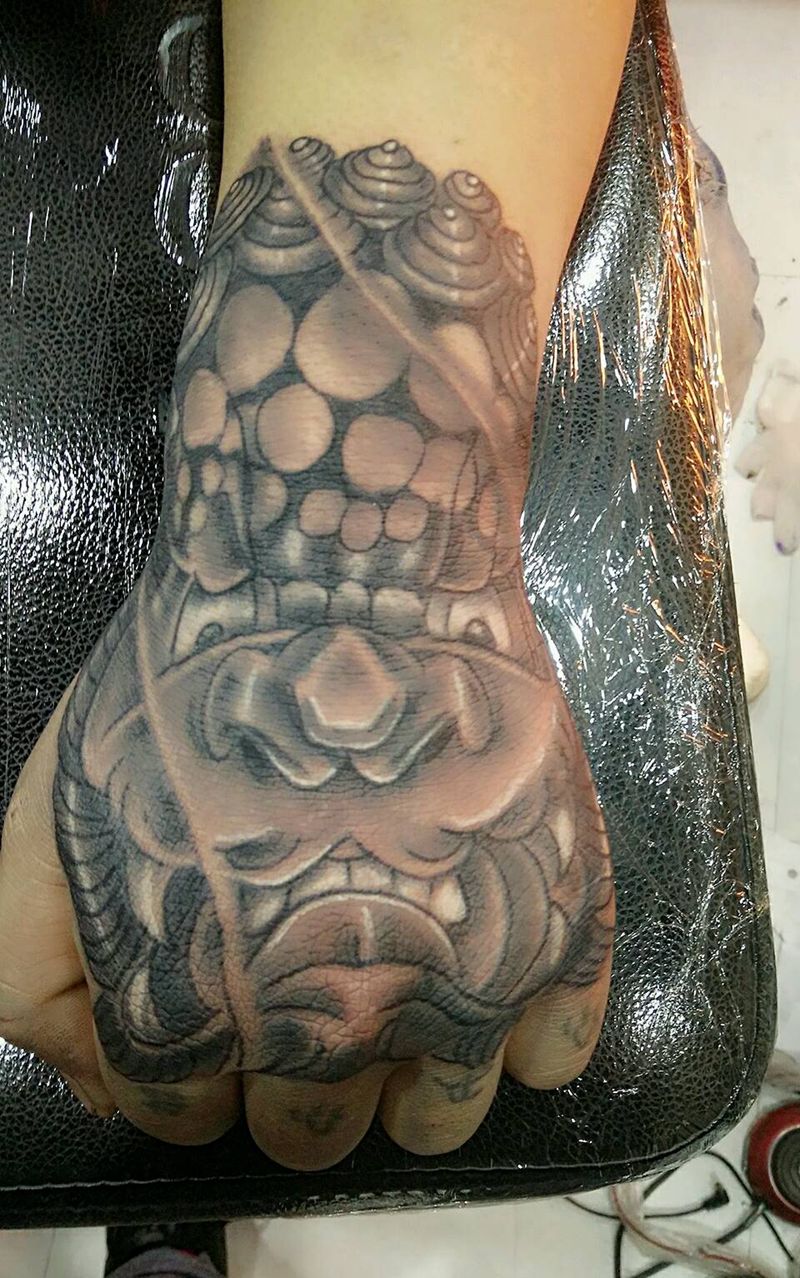 当前位置: 首页 >山西省运城市纹身店-运城火龙纹身机构纹身图案>手背唐狮纹身图片