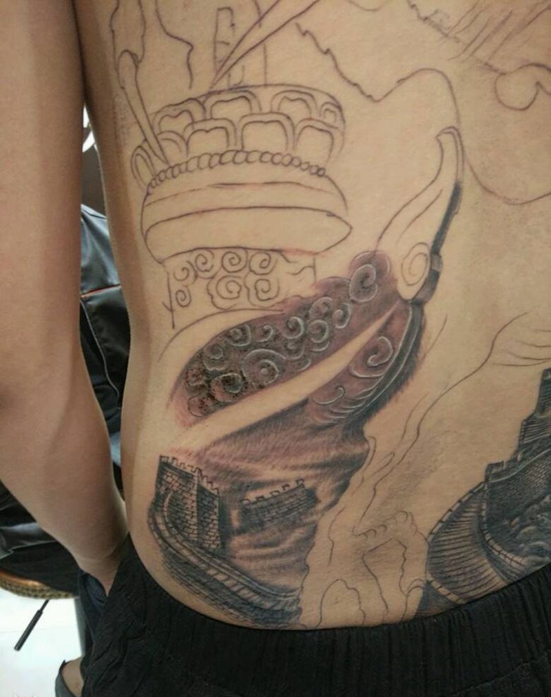 当前位置: 首页 >山西省运城市纹身店-运城火龙纹身机构纹身图案>满背进行中纹身图片