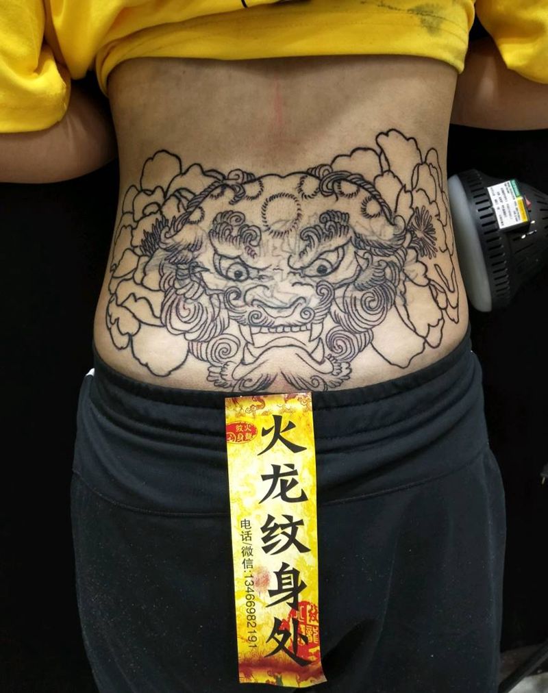 唐狮遮盖纹身图片