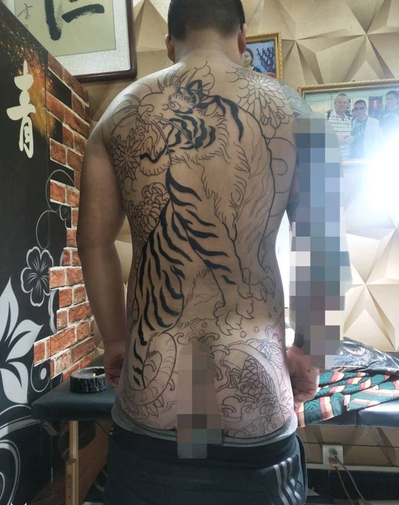 当前位置: 首页 >山西省运城市纹身店-运城火龙纹身机构纹身图案>满背老虎1800纹身图片_老传统纹身图案
