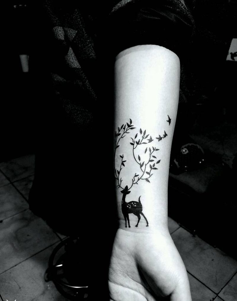 小鹿纹身图片_肩部胸部手臂欧美传统几何图腾原创成品手稿纹身图案