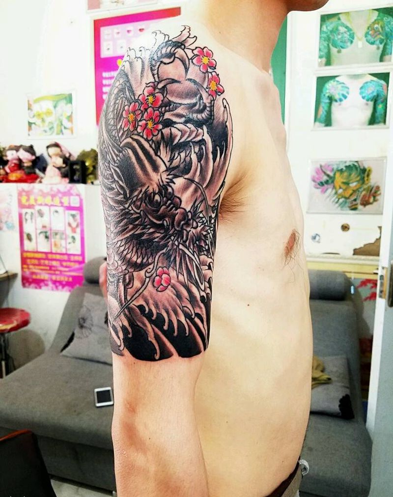 传统风格纹身图片_肩部背部手臂欧美传统写实图腾原创成品纹身图案