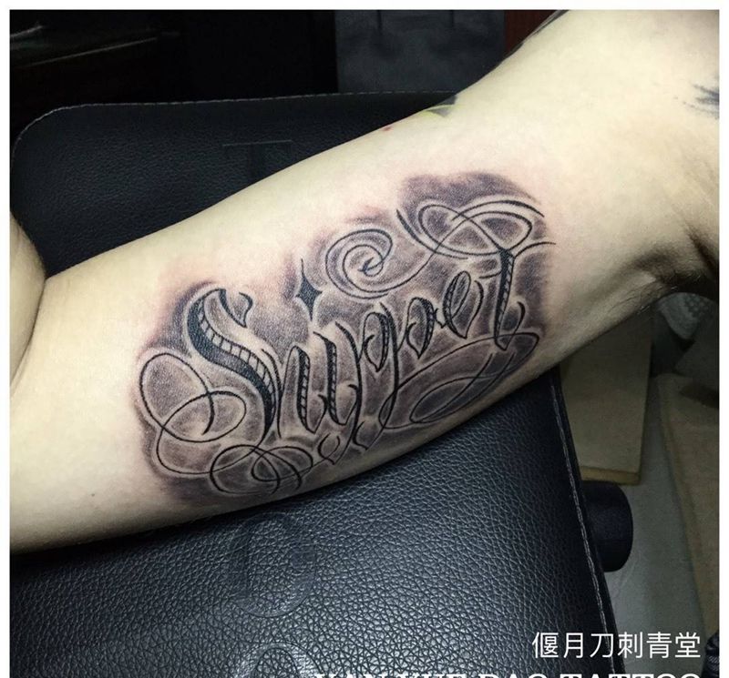 当前位置: 首页 >山西省运城市纹身店-偃月刀刺青工作室纹身图案>手绘花体字纹身图片_手臂花体字原创纹身图案