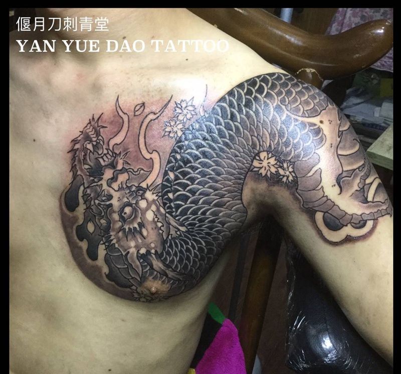原创传统龙纹身图片_原创成品手稿胸部传统龙纹身图案